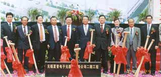 本报讯: 2004年4月29日上午10点,阳光明媚,春意盎然,“无锡夏普电子元器件有限公司二期工程奠基庆典仪式”在充满着吉祥与喜庆的气氛中,隆重举行。无锡市人民政府副市长谈学明先生,无锡市新区管理委员会主任周谦先生,无锡市电仪资产经营公司董事长、无锡市电子仪表工业公司总经理张健先生,溧阳市人民政府副市长赵国兴先生,日本夏普株式会社移动液晶事业本部副本部长北条圭一先生,夏普办公设备(常熟)有限公司总经理内山宏明先生等贵宾特邀出席了本次奠基庆典仪式。参加庆典仪式的特邀来宾还有:无锡市发展计划委员会、市经贸委、市外经局等市属各部委办的领导代表,有:无锡市交通银行、中国银行无锡分行、东京三菱银行上海分行、日联银行上海分行、无锡市建设银行、市招商银行、无锡市中国人民保险公司等单位的领导代表,还有来自新区各相关部门的领导代表,和来自龙海建设集团、清水建设(中国)有限公司、第十一设计院、高沙建设工程有限公司、无锡协联电热厂、溧阳市建设局等单位的领导代表。